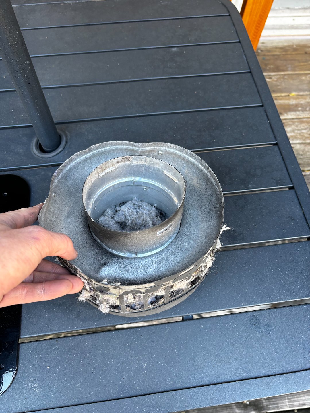 We performed a complete dryer vent cleanout, removing a substantial amount of built-up lint from the duct system. Restoring proper airflow immediately improves drying efficiency, reduces strain on the appliance, and lowers fire risk caused by lint buildup. During our inspection, we explained that while the system was now clean, the outdated roof jack would continue to restrict airflow and contribute to premature lint accumulation if not corrected.