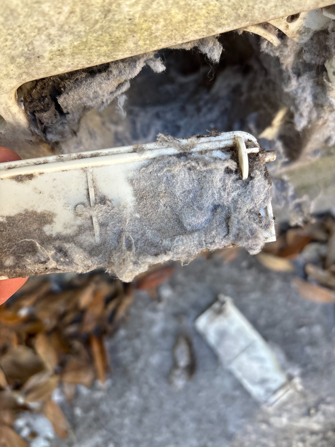 Conducted a dryer vent cleaning in Fairhope, Alabama. There was significant lint buildup in the vent system, and the original dryer vent cover was not efficient at allowing lint to escape. These covers are typically plastic and tend to become brittle quickly when exposed to the elements. We always recommend upgrading to an InOvate dryer vent cover, which allows lint to exit freely and reduces back pressure in the system. This helps the dryer operate more efficiently, lowers energy costs, and reduces fire risk.