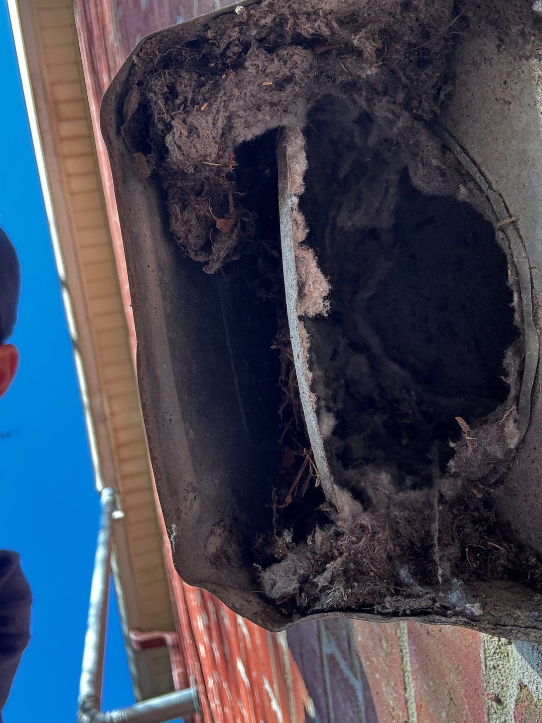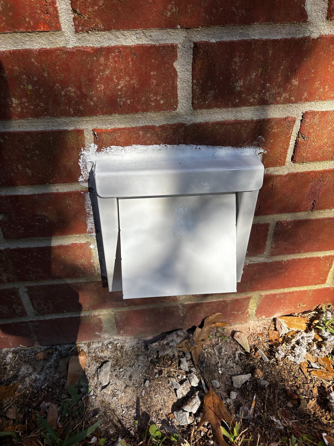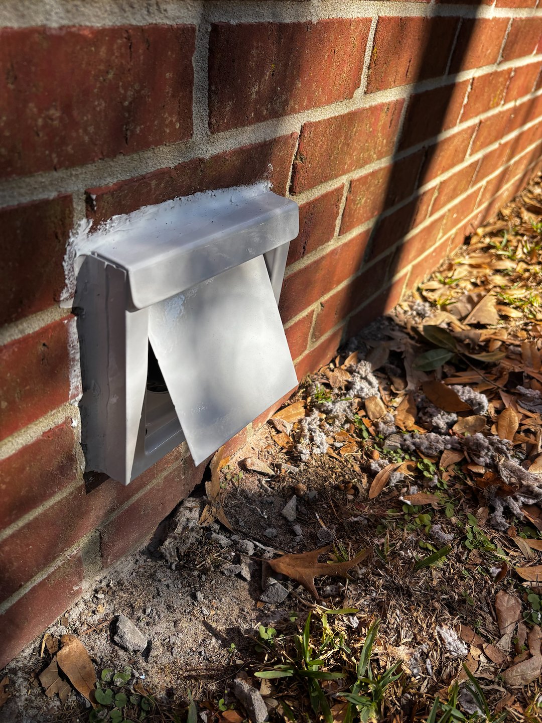 Conducted a complete dryer vent inspection at a residence in Mobile, Alabama. The client required a full dryer vent cleaning and an electrical cavity cleanout. During the inspection, the existing exterior vent cover was found to be defective, with a damper flap that was not sealing properly, allowing moisture and potential rodent intrusion into the system. We replaced the transition hose with a code-compliant DryerFlex and installed a new InOvate dryer vent cover to ensure proper airflow, sealing, and long-term protection.