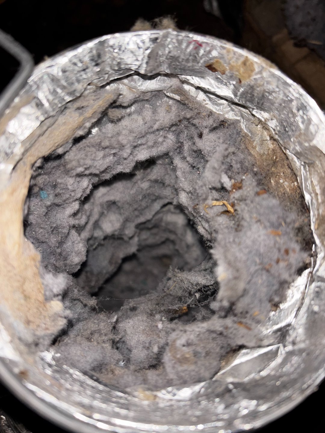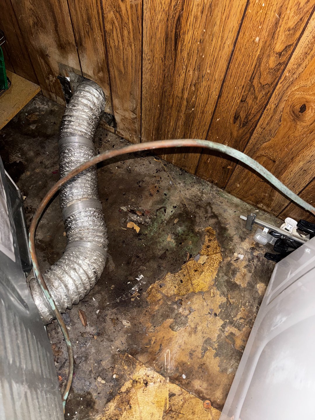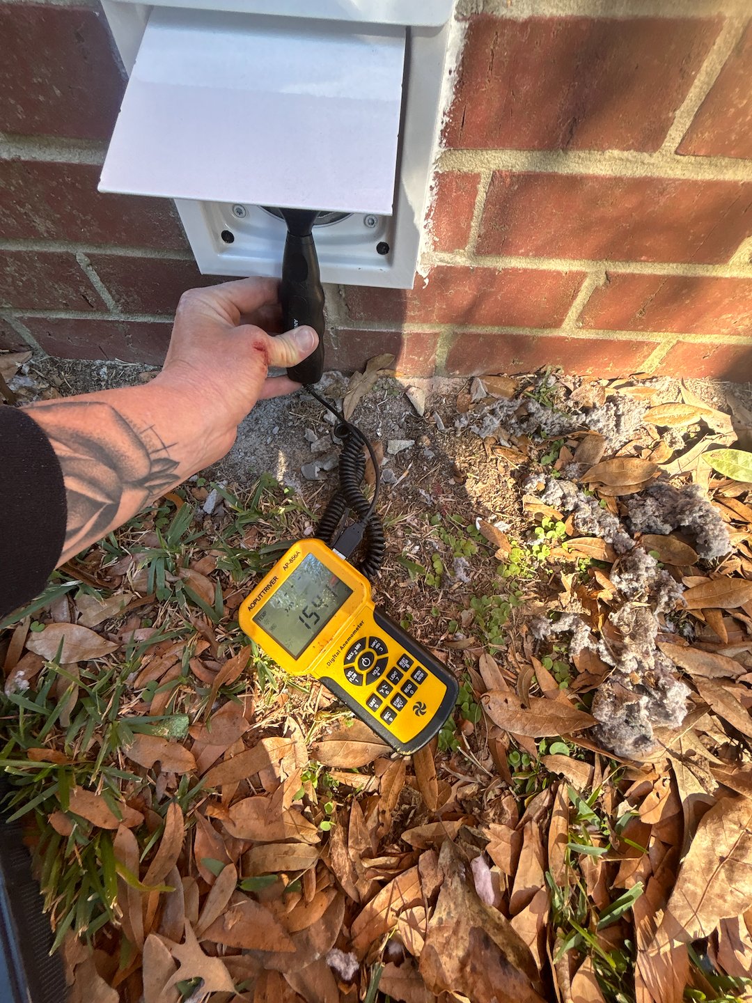 Conducted a complete dryer vent inspection at a residence in Mobile, Alabama. The client required a full dryer vent cleaning and an electrical cavity cleanout. During the inspection, the existing exterior vent cover was found to be defective, with a damper flap that was not sealing properly, allowing moisture and potential rodent intrusion into the system. We replaced the transition hose with a code-compliant DryerFlex and installed a new InOvate dryer vent cover to ensure proper airflow, sealing, and long-term protection.