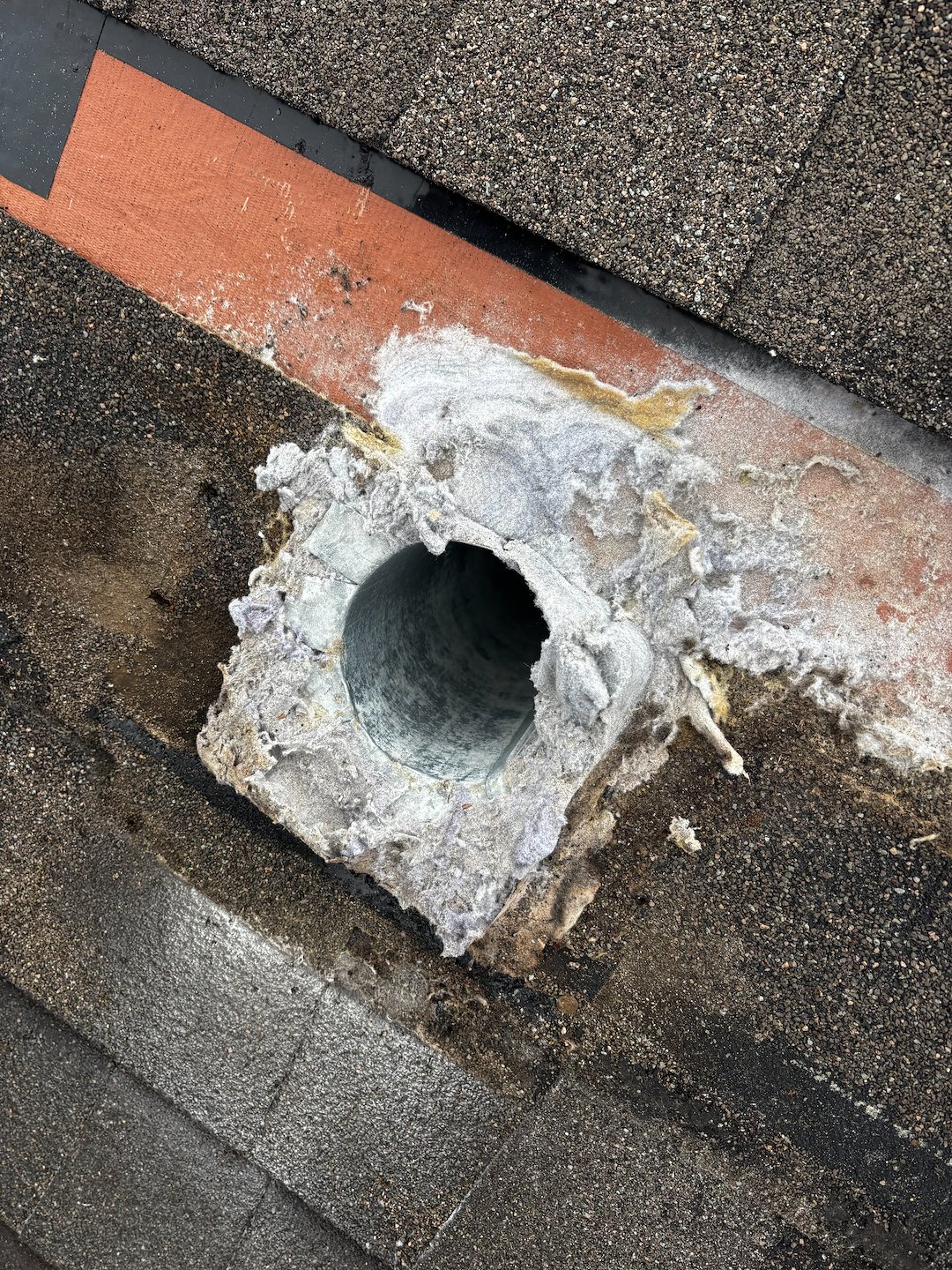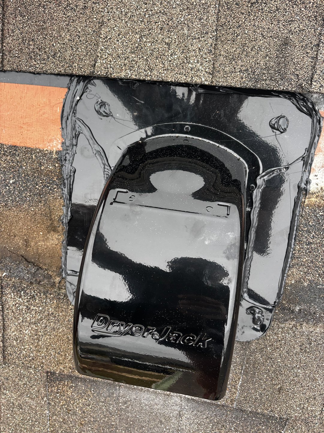 To correct the issue, we removed the existing roof jack and installed an InOvate DryerJack, which is specifically designed for dryer vent systems. This termination allows lint to exit the system freely while minimizing airflow resistance. The new DryerJack was properly installed, flashed, and sealed to ensure both proper vent performance and roof integrity.