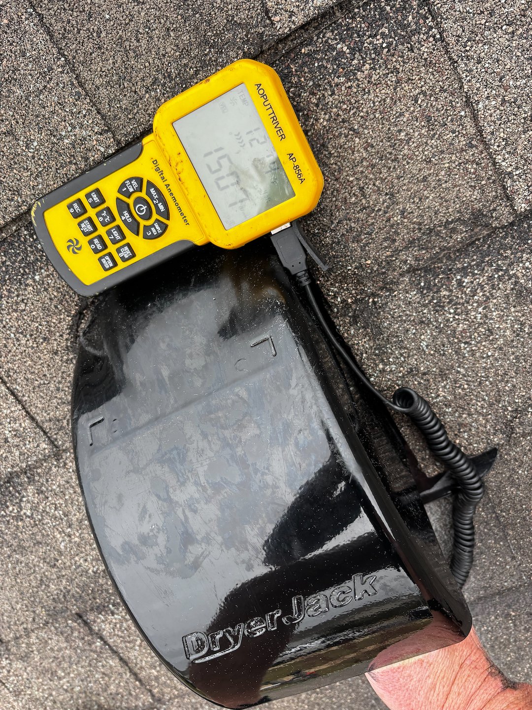 By replacing the restrictive roof jack with a code-conscious dryer vent termination, airflow through the system improved significantly. Reducing back pressure allows the dryer to move air more efficiently, improving drying performance, lowering energy use, and reducing the risk of lint accumulation that can lead to dryer fires.